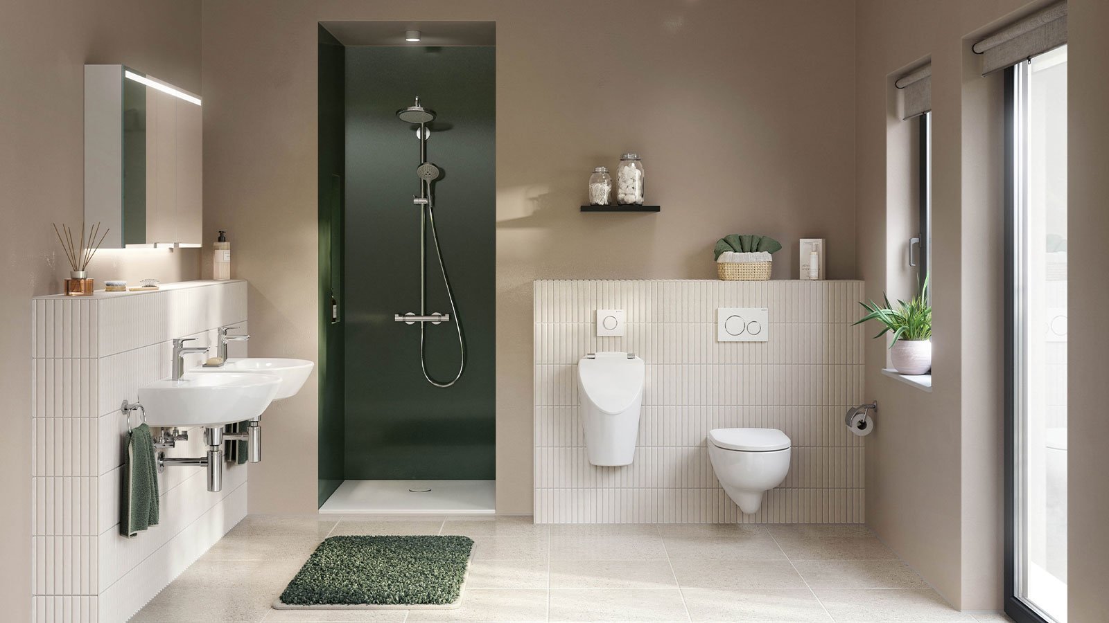 Entdecken Sie das GROHE Perfect Match Prinzip: Stilvolle Kombination aus GROHE Cubeo Armaturen, Euro Keramik und Tempesta Duschsystem. Für ein harmonisches, modernes und pflegeleichtes Badezimmer mit langlebiger Qualität und nachhaltigen Funktionen.