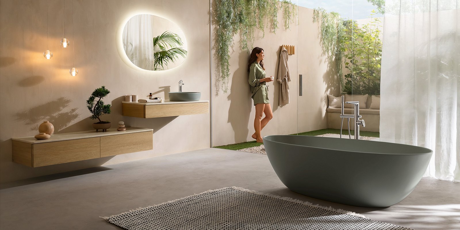Die Komplettbadkollektion Antao von Villeroy & Boch überzeugt mit ihrem organischen, naturinspirierten Design und einer großen Auswahl an natürlichen Farben, Materialien und Größen.